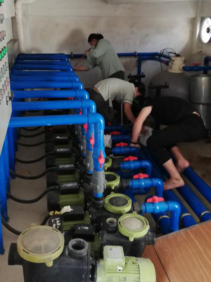 2020年2月23日,溫泉部進(jìn)行全區(qū)域消毒清潔工作,對(duì)池區(qū)內(nèi)的泵房、游泳池頂棚進(jìn)行清洗。在區(qū)域分工安排時(shí),一部分未做過此工作或恐高的同事提出異議,無法開展工作。為緩解此情況,所有同事經(jīng)商量后,根據(jù)平時(shí)大家熟悉的工作進(jìn)行互調(diào),有個(gè)別實(shí)在無法調(diào)配就先讓其整理清潔其它衛(wèi)生,其它同事做完自己所負(fù)責(zé)區(qū)域工作后再幫忙。最后,在大家同心協(xié)力下,很好地完成了工作安排。