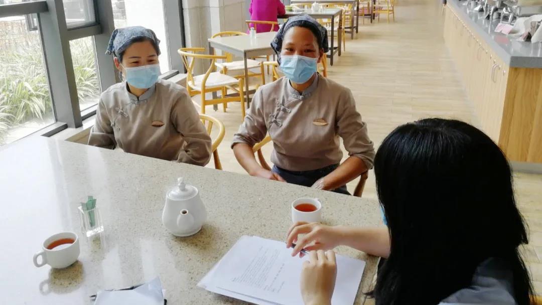 今年春茶產(chǎn)量為歷年來最大,加上疫情影響,因此今年茶田管理部春茶搶收工作面臨不小挑戰(zhàn)。一方面要做好防疫保障工作,另一方面要確保春茶搶收任務(wù)圓滿完成。第一是安全工作,貴州老鄉(xiāng)的安置隔離。茶田管理部安排專車到車站把老鄉(xiāng)接到隔離安置點(diǎn)進(jìn)行為期七天的隔離,隔離期間堅(jiān)持每天測量2次體溫,幫老鄉(xiāng)配送生活用品;本地勞務(wù)工則每天上班前測量體溫,并按時(shí)匯報(bào)所有工作人員健康情況;各個(gè)片區(qū)準(zhǔn)備必須應(yīng)急藥品。第二,春茶采摘期間,部門統(tǒng)一調(diào)度、安排各項(xiàng)工作,從勞務(wù)人員的專車接送、采摘指導(dǎo)跟進(jìn)、茶青驗(yàn)收登記、用餐用水保障等工作都安排專門人員負(fù)責(zé)跟進(jìn),落實(shí)責(zé)任,保障了春茶搶收緊張有序進(jìn)行。真正做到兼顧統(tǒng)籌,質(zhì)安第一。