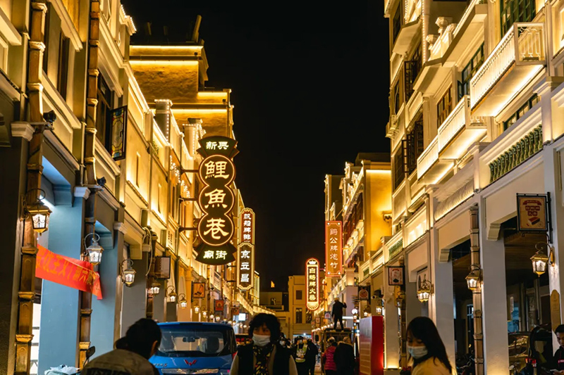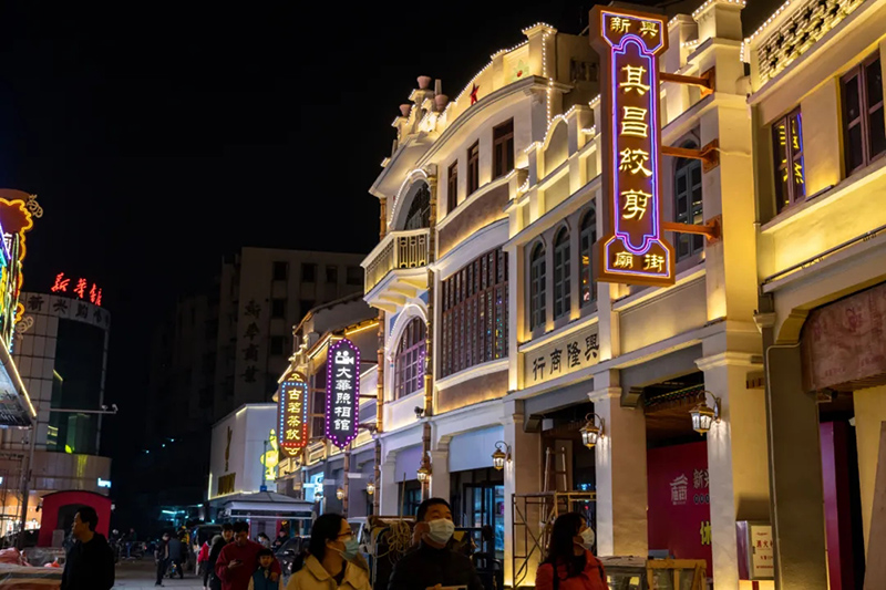 改造后的街道全部采用了節(jié)能環(huán)保材料及先進(jìn)燈光技術(shù),老建筑及商廈外立面的景觀燈光,充滿復(fù)古浪漫情調(diào)的燈影,將夜幕下的街景點(diǎn)綴得如夢(mèng)如幻。這里,將成為最新的網(wǎng)紅打卡點(diǎn)及年輕品牌聚集地。