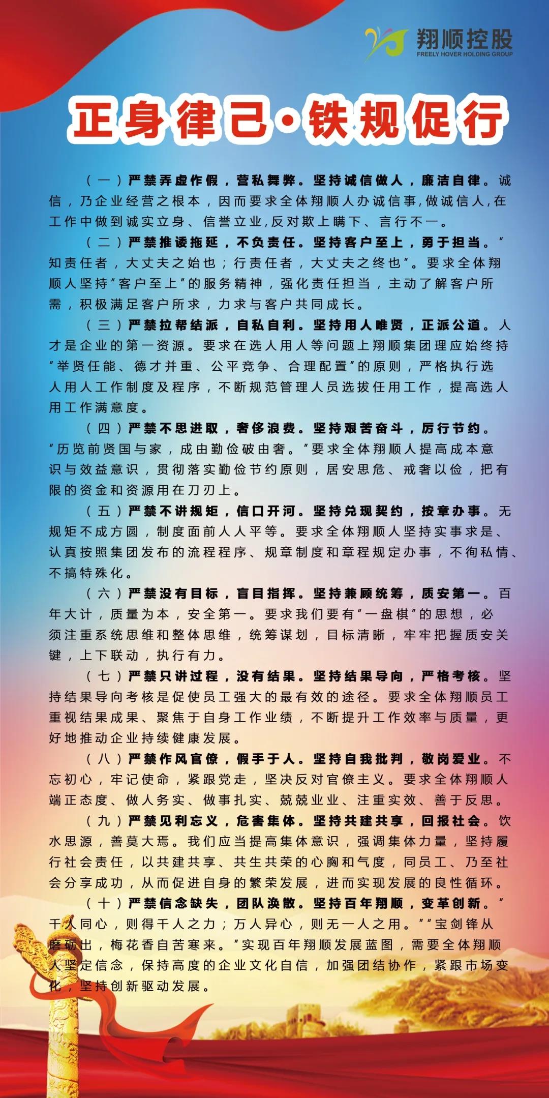 ▲ 翔順十大鐵規(guī)鐵紀(jì)宣傳圖