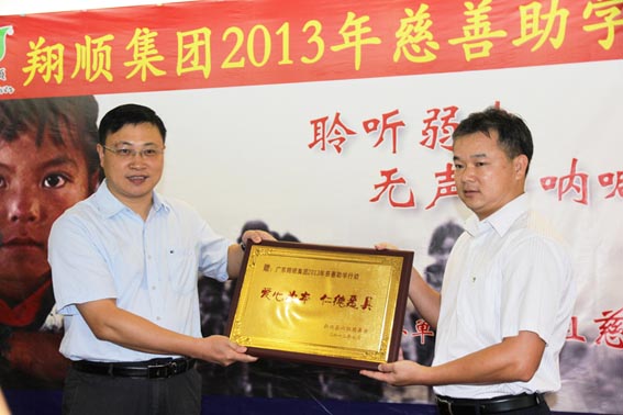 7月11日上午,由縣六祖慈善會、團縣委、縣婦女聯合會、縣民政局、縣教育局聯合舉辦的新興縣“2013年慈善助學行動”啟動儀式在翔順花園酒店會議廳盛大舉行,由翔順集團捐助30萬元資助500名貧困家庭學童,幫助他們圓上學夢,得到資助的孩子們臉上露出了淳樸的笑容。