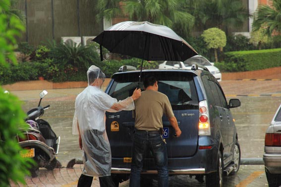 5月的大部分時(shí)間都在下雨。透過(guò)淅淅瀝瀝的雨線,映入我視野的是那撐著大雨傘為我們遮風(fēng)擋雨的保安。