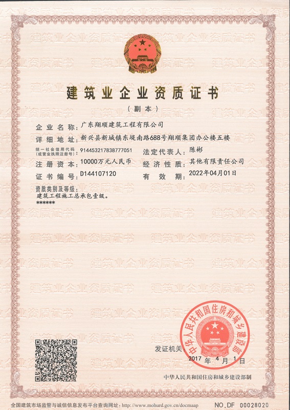 近日,小編從住建部官網獲悉,住建部于2017年4月1日發布《住房城鄉建設部關于核準2017年度第三批建設工程企業資質資格名單的公告》(中華人民共和國住房和城鄉建設部公告第1510號),廣東翔順建筑工程有限公司成功晉升建筑工程施工總承包壹級資質。