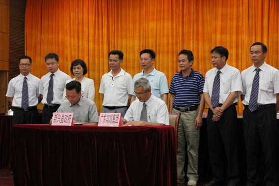9月7日上午,捐資簽約儀式在縣委縣府大樓大會堂舉行。儀式上,縣長葉銳代表縣政府與集團代表副總裁龍飛波簽訂《捐資改造建設(shè)興育學(xué)校協(xié)議書》。