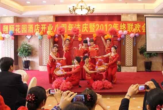 2012年的年終聯歡會選在酒店開業八周年的日子舉行,更添一份喜慶。八年來,酒店營業額節節攀升,愿酒店在發展路途上生意興隆,紅紅火火。