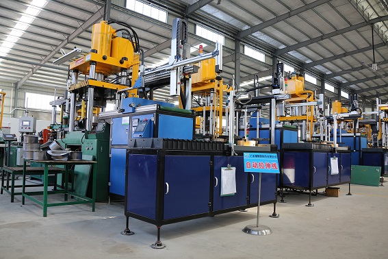 據翔順餐廚具生產部經理介紹,搬廠前公司的沖壓還采用手動模式,即人工操作機器,按時間、力度等要求進行拉伸,經過一拉、二拉、三拉等多道工序才完成,且拉伸沖壓出來的效率起伏不定。而現在,采用全自動機械沖壓,沖壓快,效率高,人力成本低,緊跟發達國家餐廚具制造步伐。