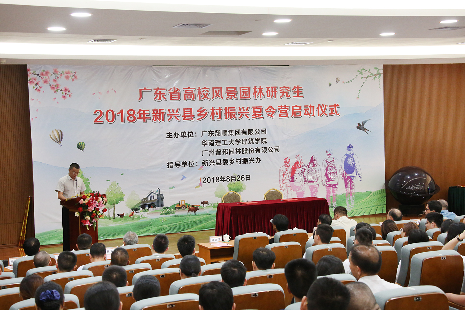 活動中,出席啟動儀式的相關領導共同摁下“廣東省高校風景園林研究生2018年新興縣鄉村振興夏令營”啟動球,正式啟動該項目。