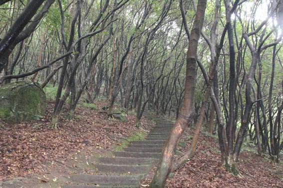 已進(jìn)入秋天,山上氣溫仍較高。走在象窩山的石階上,拾級(jí)而上,四周都是高大的樹木,郁郁蔥蔥、清幽雅靜,沒有受到外面氣溫的影響,依然涼爽宜人。不時(shí)還能聽見小鳥清脆的叫聲,幸運(yùn)的話還能遇到幾只可愛的小松鼠。