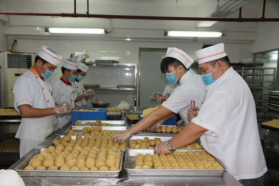 據悉,翔順月餅能得喜人的銷售效果,離不開四大策略:第一是做好準備。在7月份,酒店就已經著手籌備今年的月餅生產工作了,清理工場、采購和更新設備、出臺采購原材料清單、落實跟進人員等一系列工作作好部署;第二是營銷策略。由部門經理組建營銷團隊,主動出擊,積極與潛在客戶洽談、落實訂單;第三是設點布置。為了方便市民選購,在翔順花園酒店大堂、翔順集團舊辦公樓門前、文化廣場、環城南路、鳳凰廣場這五個直銷點,可以很好地滿足片區市民的購買需求。同時,各直銷點也有抽調員工專職負責做好零售和客戶兌換餅票工作。還與一些商店簽約代售合作,擴大銷量;第四是合理安排人員生產和后勤保障工作。晝夜輪班,加班加點,開足馬力生產和銷售。“我們有28位師傅日夜輪班、加班加點生產月餅,工作強度大、任務重。”山總說,這段時間,師傅們晚上經常加班到凌晨一兩點,為的就是要把新鮮熱辣的月餅及時生產出來,順利運送到顧客的手中。
