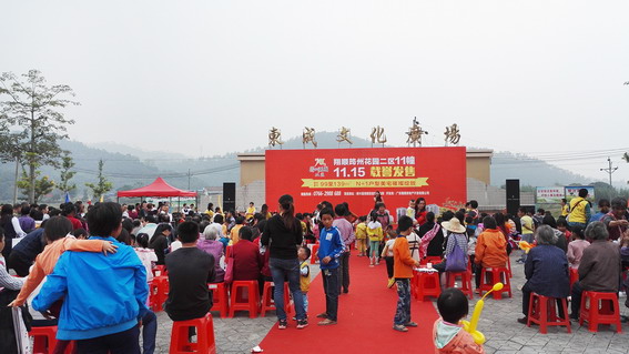 11月15日上午,送戲活動的第二站來到了東成鎮,翔順房地產公司在簕竹站節目的基礎上,增添了搖滾樂隊演唱beyond經典曲目,女歌手與在場小朋友互動合唱“哆啦A夢”,更深受小朋友們的喜愛。歡樂抽獎、有獎問答等環節將現場氣氛推向高潮。活動當天,整個東成鎮文化廣場成為一片歡樂的海洋。