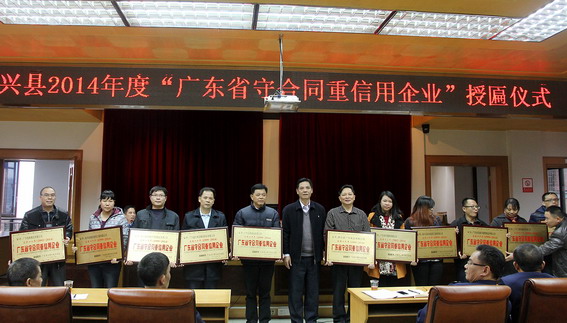 12月10日,新興縣2014年度“廣東省守合同重信用企業”授匾儀式在縣工商局隆重舉行。翔順集團連續14年獲此殊榮,下屬9家公司再次全部上榜,實現“全連莊”。