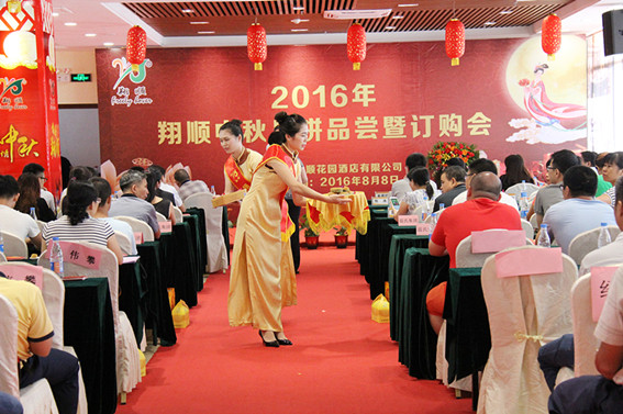 8月8日,“2016翔順中秋月餅品嘗暨訂購會”在翔順花園酒店宴會廳熱烈舉行,來自翔順各兄弟公司領(lǐng)導(dǎo)、翔順酒店合作伙伴、翔順月餅經(jīng)銷商、花園酒店供應(yīng)商、社會各界人士等歡聚一堂,共同感受了一次了解翔順月餅文化、品嘗月餅佳肴的“嘉年華”?;顒游忻窦敖?jīng)銷商近五百人前來捧場。據(jù)悉,這是翔順月餅11年品牌史里首次舉辦如此大型的品嘗暨訂購會。翔順花園酒店總經(jīng)理崔秀山表示,活動旨在讓更多客戶了解翔順月餅文化,增進交流與認識,活動反響很好。