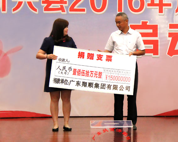 本報(bào)訊 6月29日下午,在2016年“廣東扶貧濟(jì)困日”活動(dòng)啟動(dòng)儀式上,集團(tuán)總裁助理崔健鋒代表翔順向新興縣政府遞交150萬(wàn)元捐贈(zèng)支票,繼續(xù)助力新興扶貧事業(yè)。翔順也因此成為本屆“廣東扶貧濟(jì)困日”活動(dòng)重點(diǎn)捐贈(zèng)企業(yè)之一。