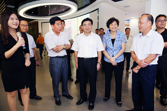 8月16日下午,省政協主席王榮一行蒞臨我集團參觀指導,了解委員企業發展情況。省相關部門領導、市縣黨委政府班子領導陪同。省政協委員、翔順集團總裁崔健平(前右一)等集團領導陪同參觀。