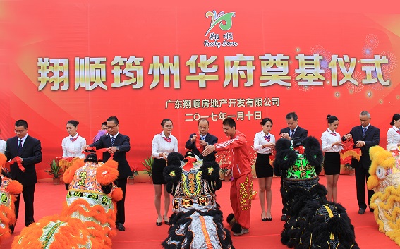 1月10日上午,翔順又一房地產(chǎn)項(xiàng)目——“翔順筠州華府”隆重奠基,繼翔順筠州花園一、二區(qū)后,翔順集團(tuán)第三個(gè)中式嶺南風(fēng)格高檔住宅小區(qū)正式上馬。翔順集團(tuán)全體行政管理人員、房地產(chǎn)公司及投資公司全體員工、建筑公司項(xiàng)目人員、三A集團(tuán)部分領(lǐng)導(dǎo)等共計(jì)200余人參加奠基儀式。