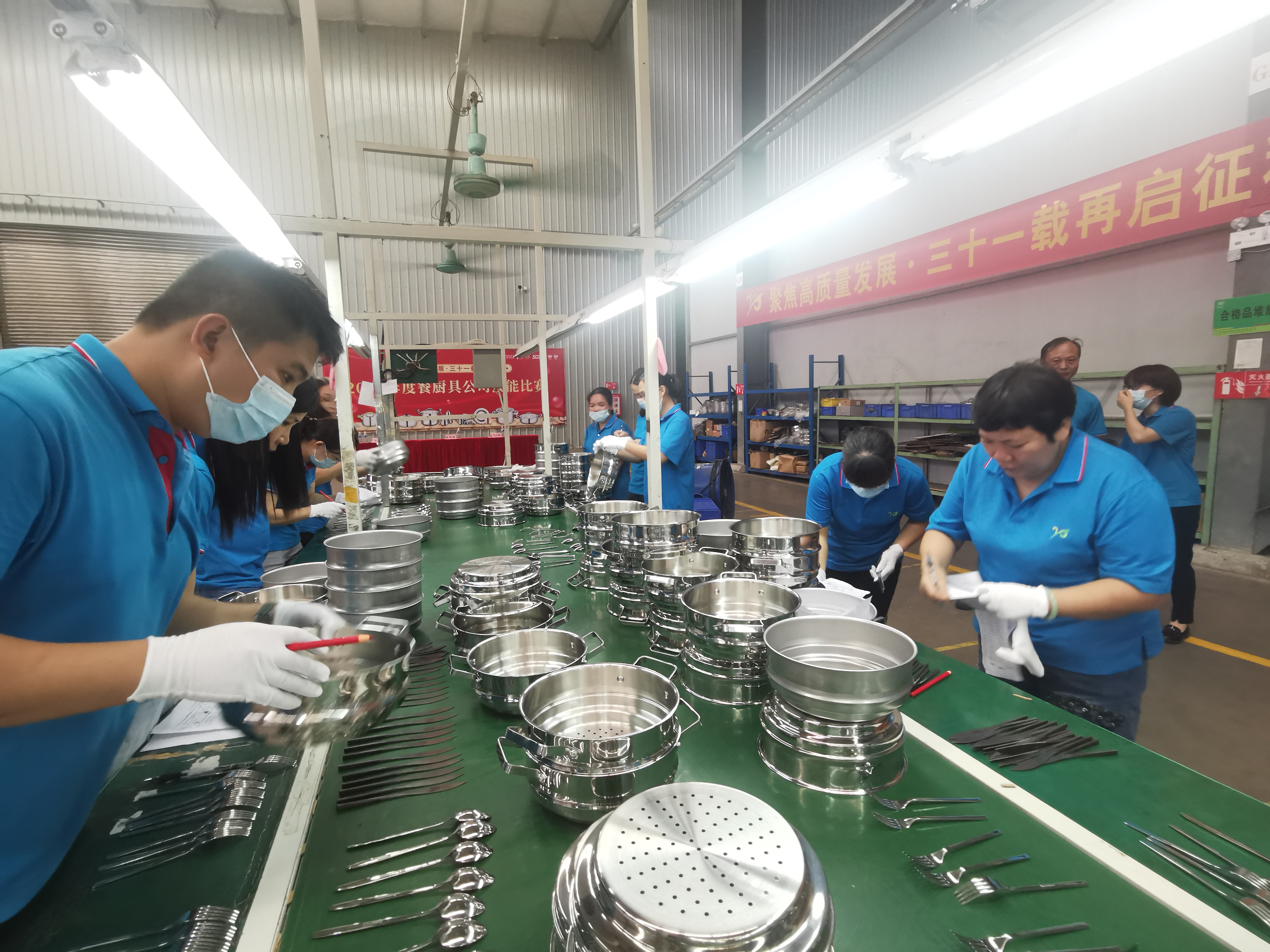 為了提升全體員工的質量意識,強化敢打敢拼的精神,全面提升員工專業技能水平,實現高質量發展,9日下午,餐廚具公司在廚具包裝車間舉行了品控質量檢測與裝箱技能大賽。集團工會主席陳錦嫦、餐廚具總經理馬小燕以及公司班子成員出席本次大賽,48名選手同場競技。